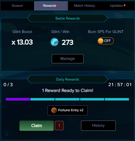 This is where the Burn SPS for Glint feature becomes interesting. When it is active, a portion of the SPS you earn will be burned to increase your Glint rewards.